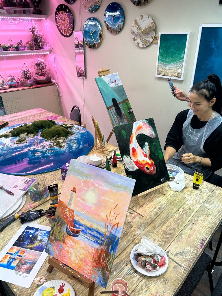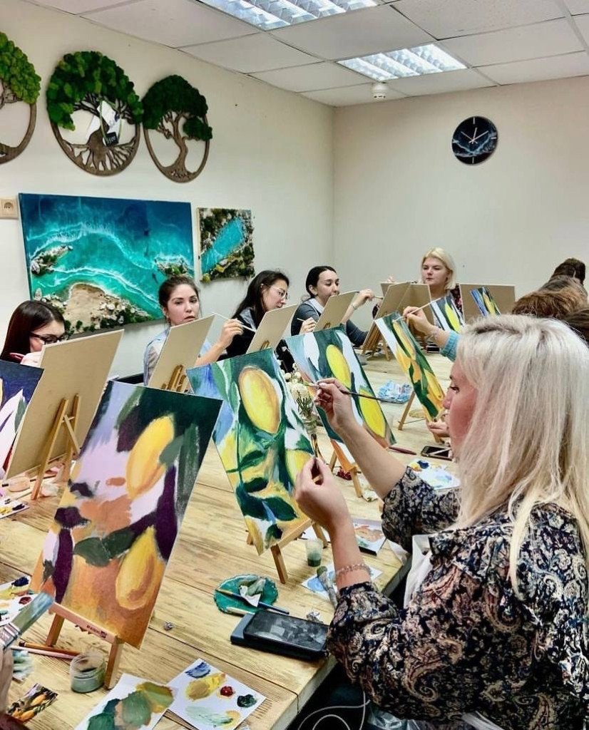 В уютной студии в центре Москвы, проходят мастер-классы в небольших группах, чтобы каждому помочь раскрыть творческий потенциал и талант, при этом не имея опыта в рисовании. Наша техника преподавания уникальна, что каждый в конце мастер-класса забирает красивую картину, которая будет радовать в интерьере. Сюжет картины выбираете на свой вкус или мы помогаем подобрать под интерьер. Помогаем вам воплотить сюжеты с ваших путешествий.